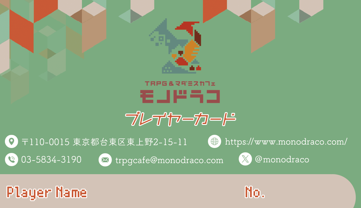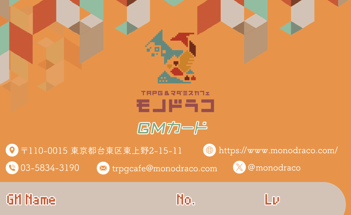 …当店でGMされるお客様には「GMカード」を発行します。セッション毎に参加プレイヤー人数分のスタンプが捺印され、スタンプが30個貯まるとモノドラコイン30枚と交換いたします。